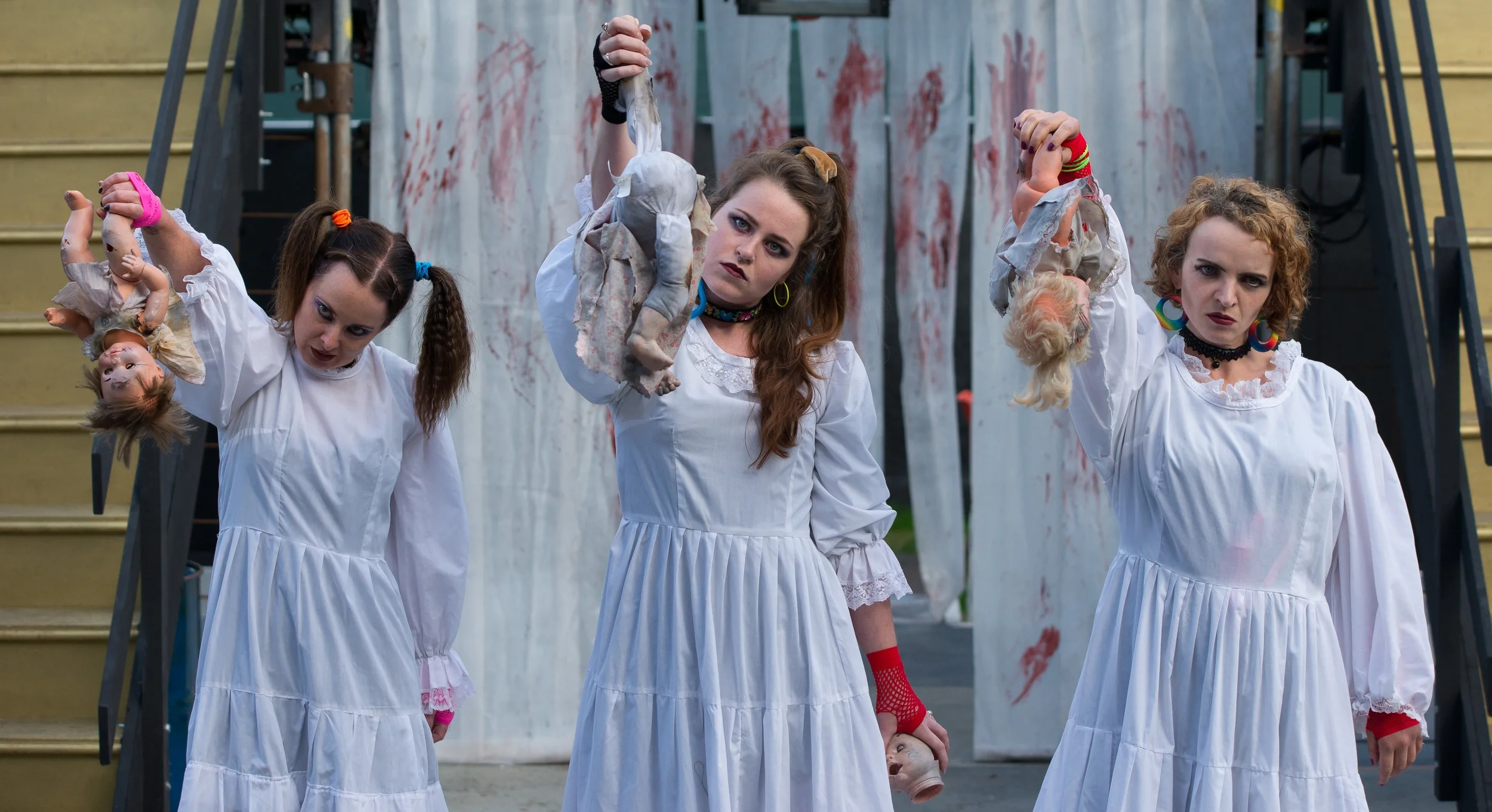 ‘The use of the set was particularly impressive, with the Weird Sisters ushering the dead off stage through bloodied plastic curtains as if in an abattoir.’
