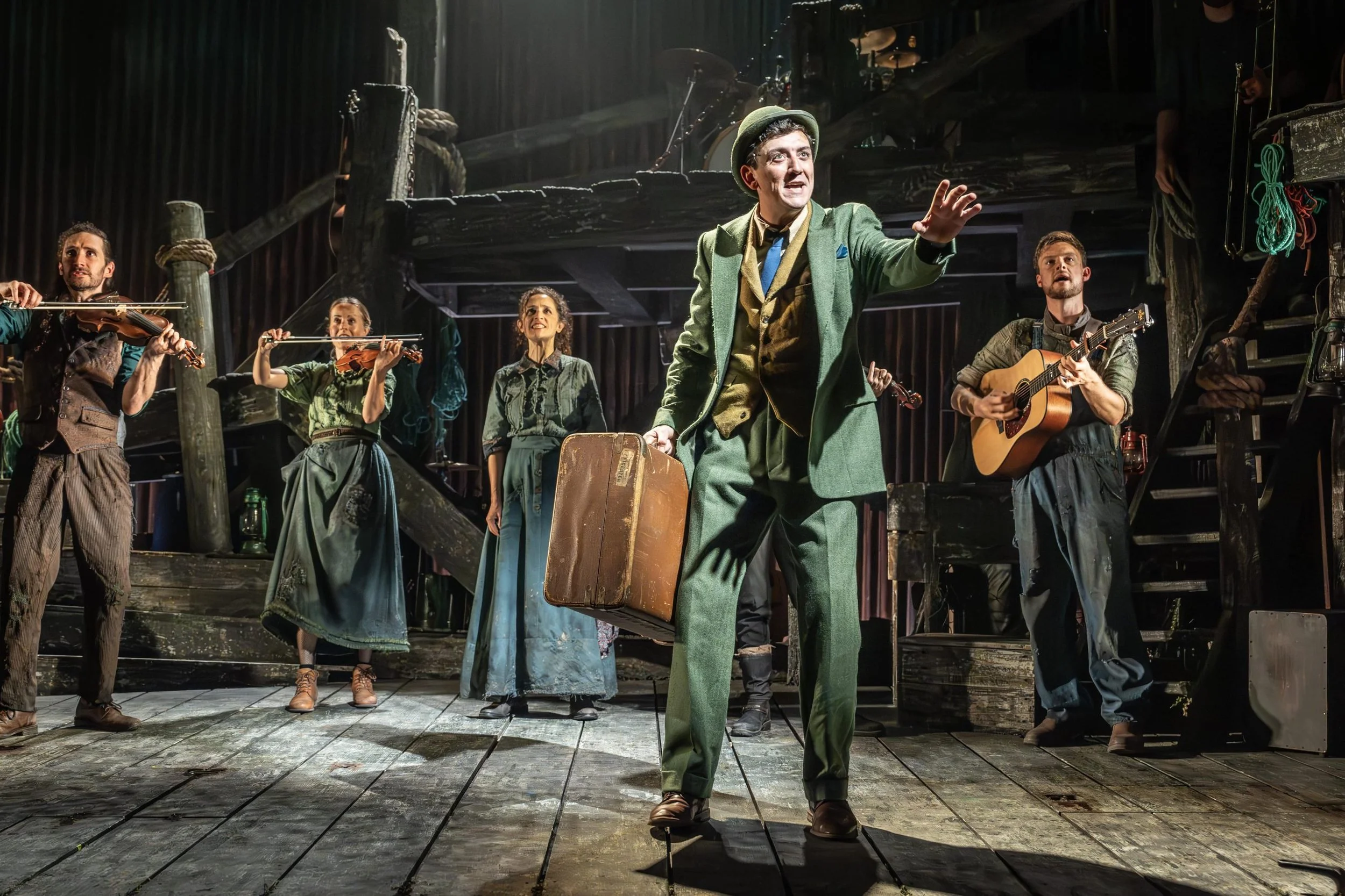 The moon, and its pull upon the sea, is a repeated motif in the text and in the gorgeously ramshackle set, simultaneously abstract and literal, of fishing nets, staircases, trapdoors, hanging orbs, twinkling lights and good honest wood, created by Compton with Anna Kelsey (who also designed the earthily attractive costumes).